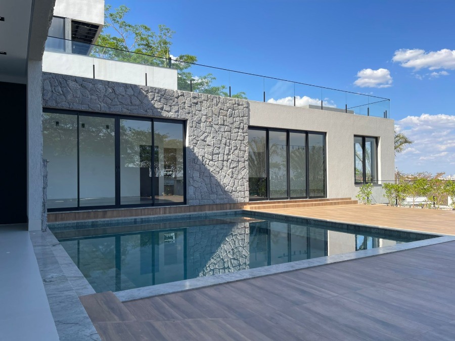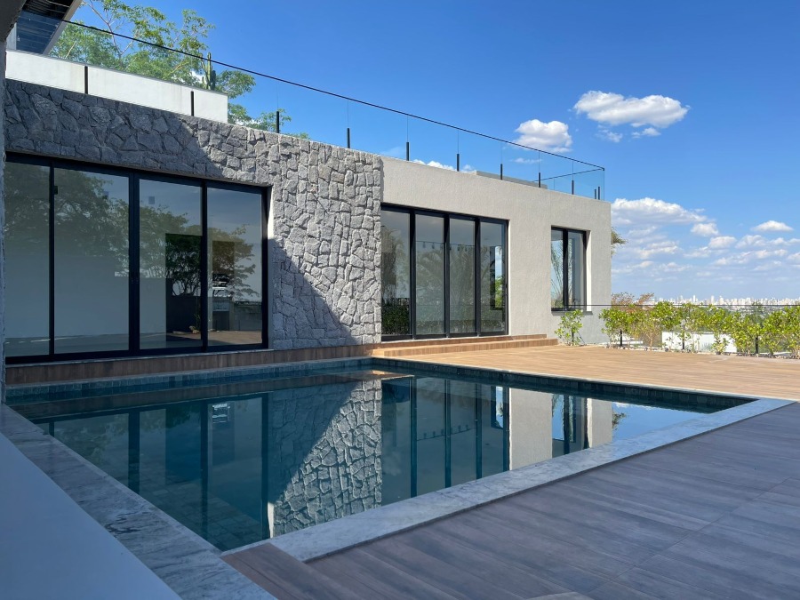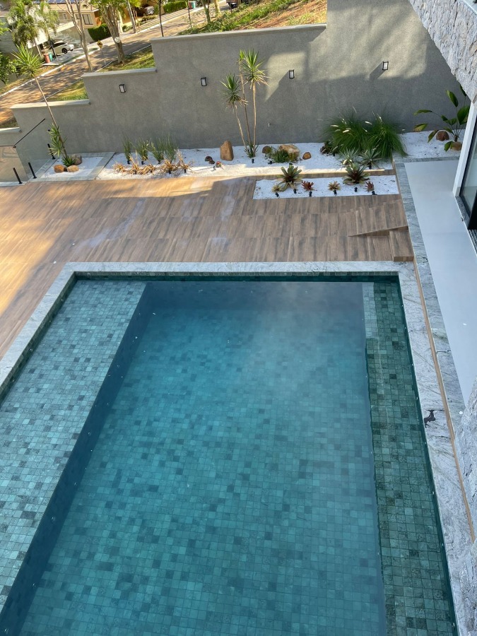 • Paisagismo desértico com irrigação automatizada e iluminação cênica.